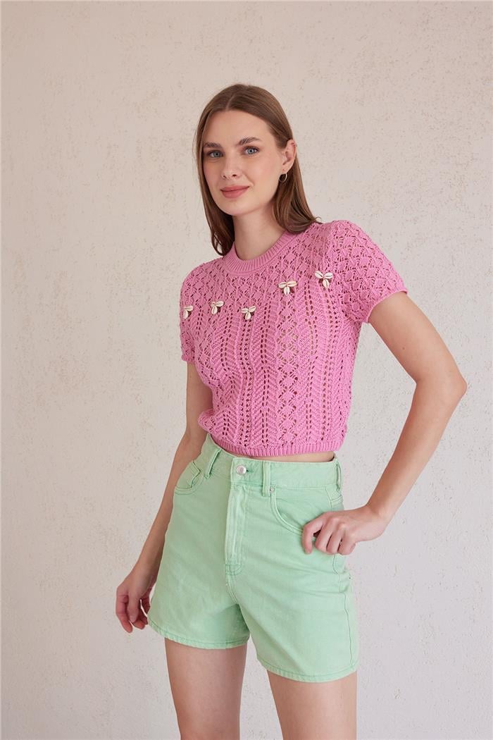 Nisan Kadın Deniz Kabuğu Detaylı Triko Bluz PEMBE TT3971-Z (TT3971-Z)