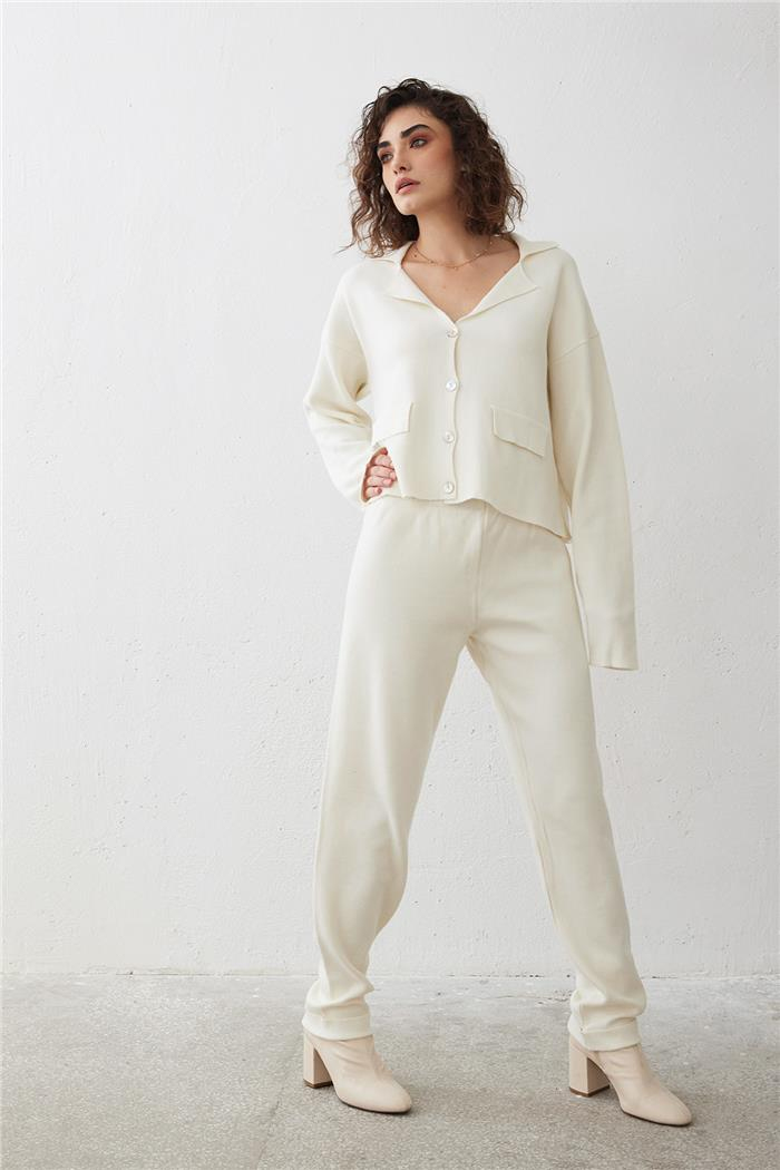 Nisan Kadın DÜĞME DETAYLI TRİKO TAKIM HAM EKRU TT4082-Z (TT4082-Z)