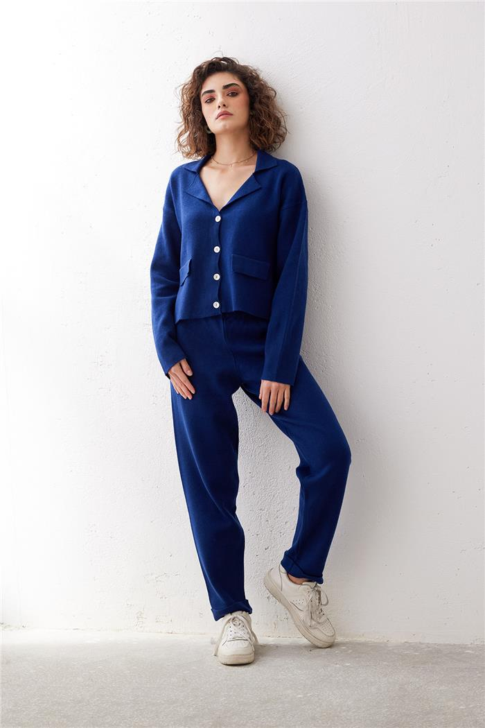 Nisan Kadın DÜĞME DETAYLI TRİKO TAKIM LACİVERT TT4082-Z (TT4082-Z)