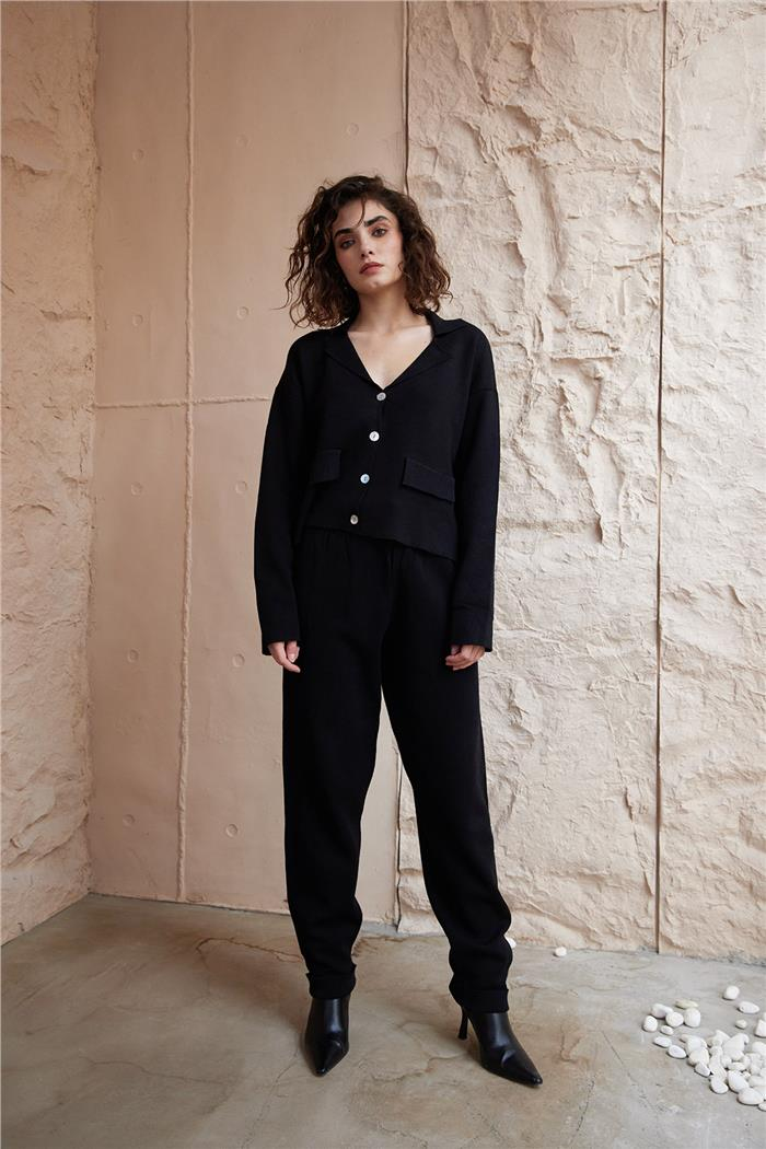 Nisan Kadın DÜĞME DETAYLI TRİKO TAKIM SİYAH TT4082-Z