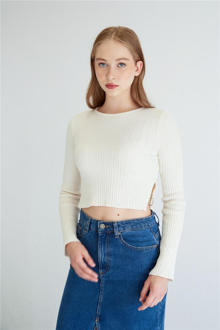 Nisan Kadın Halka Detaylı Triko Kazak HAM EKRU TT4028-Z (TT4028-Z)