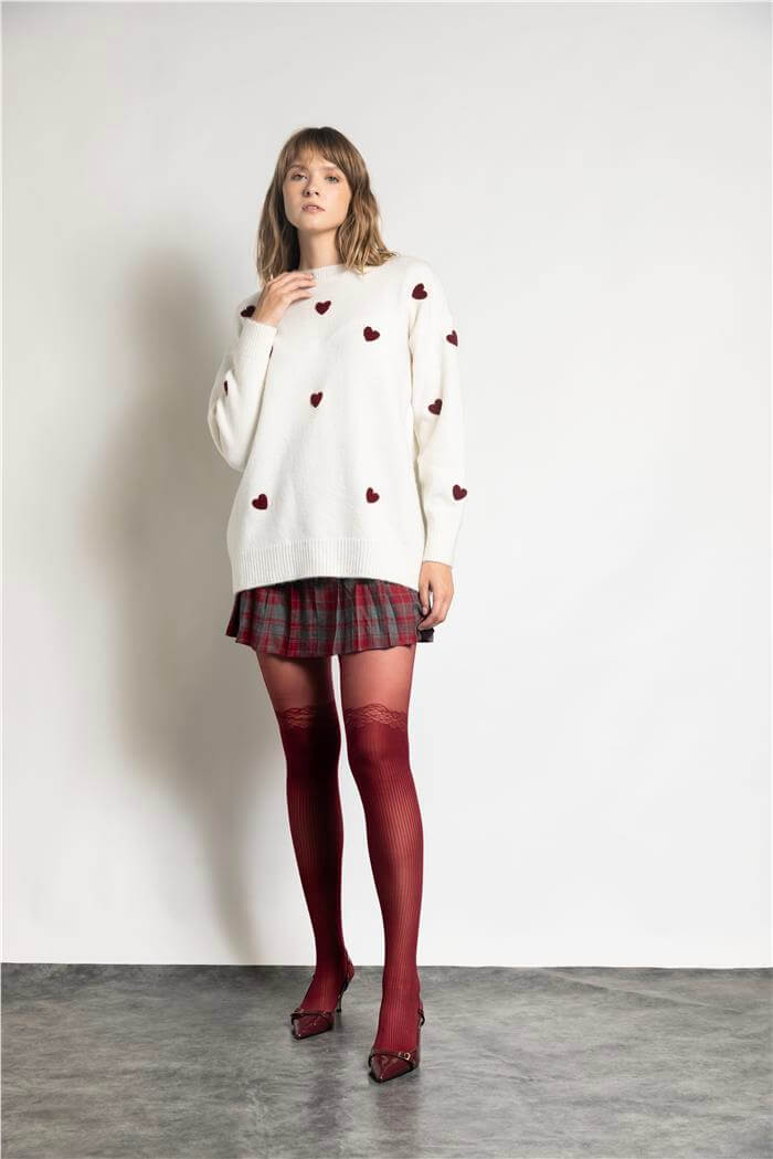 Nisan Kadın KALP NAKIŞLI TRİKO KAZAK EKRU TT4380-Z (TT4380-Z)