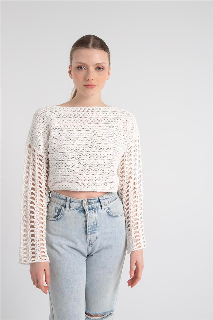 Nisan Kadın Kolları Delikli Triko Kazak HAM EKRU TT3828-Z (TT3828-Z)