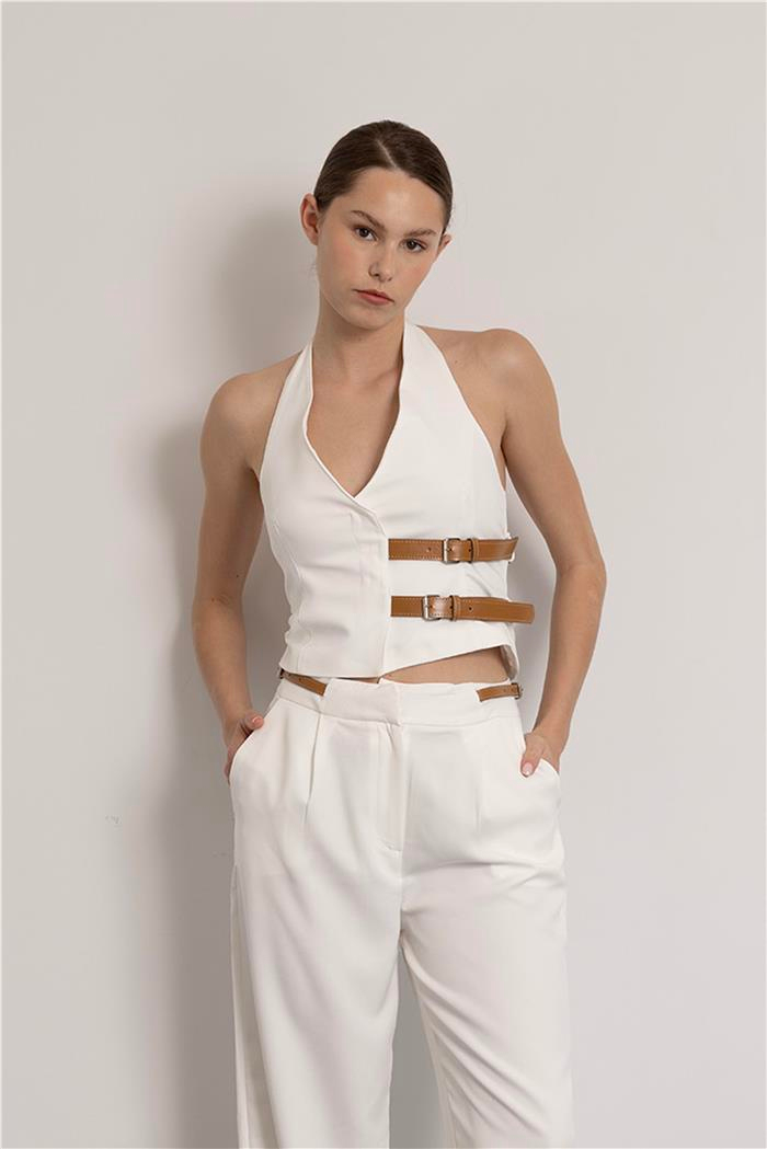 Nisan Kadın KONTRAST KEMER DETAYLI YELEK EKRU N24-1889