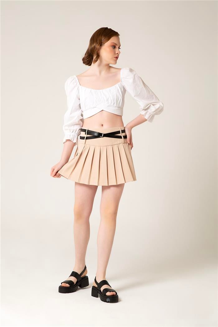 Nisan Kadın KORSAJLI PİLİSELİ ŞORT ETEK BEJ N23-1605