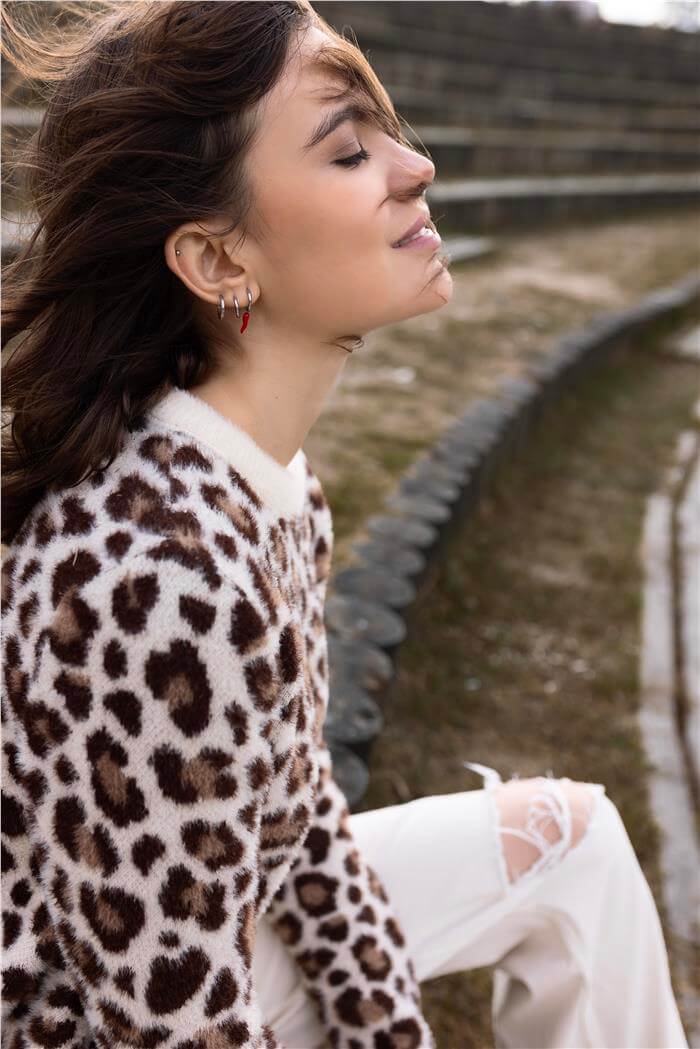 Nisan Kadın Leopar Desenli Triko Kazak TAŞ TT4382-Z (TT4382-Z)