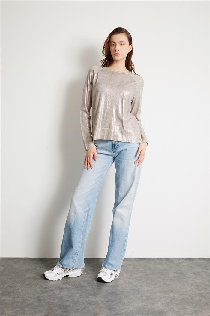 Nisan Kadın Parlak Baskılı Triko Kazak BEJ TT4245-Z (TT4245-Z)
