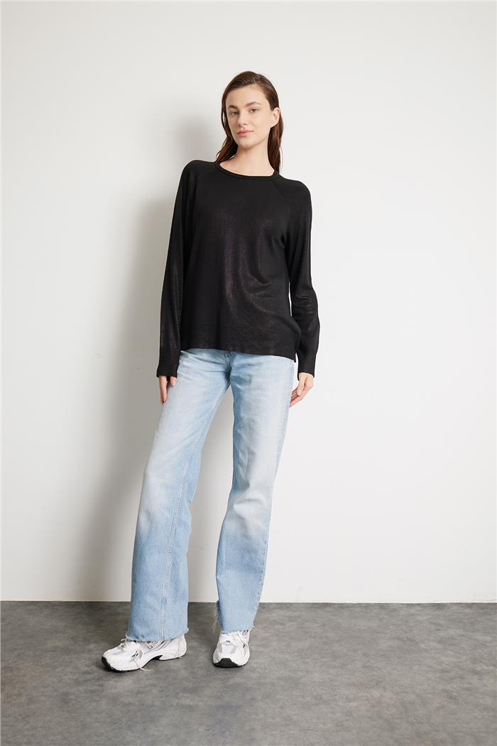 Nisan Kadın Parlak Baskılı Triko Kazak SİYAH TT4245-Z