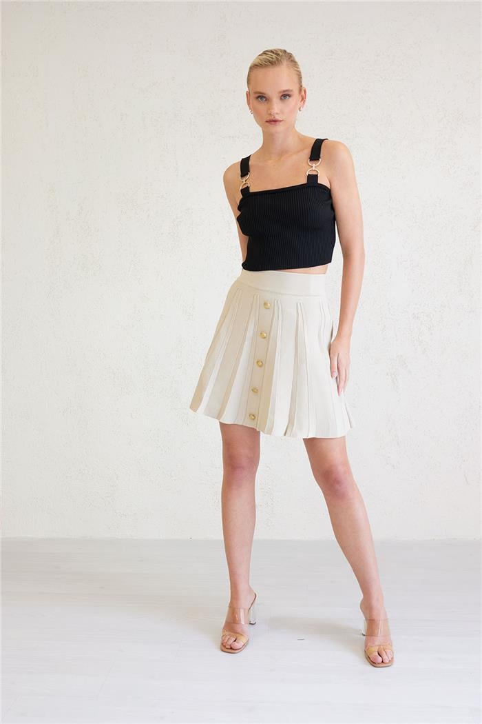 Nisan Kadın Pileli Düğmeli Triko Etek BEJ TT3919-Z (TT3919-Z)