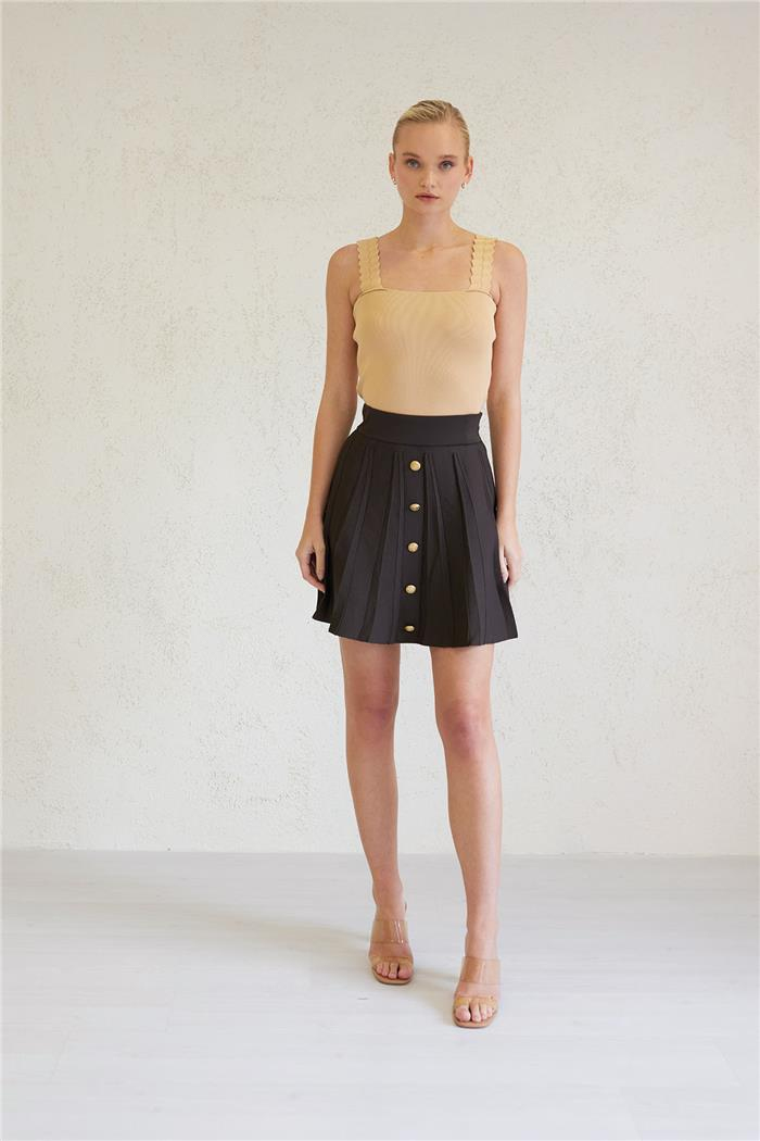 Pileli Düğmeli Triko Etek TT3919-Z