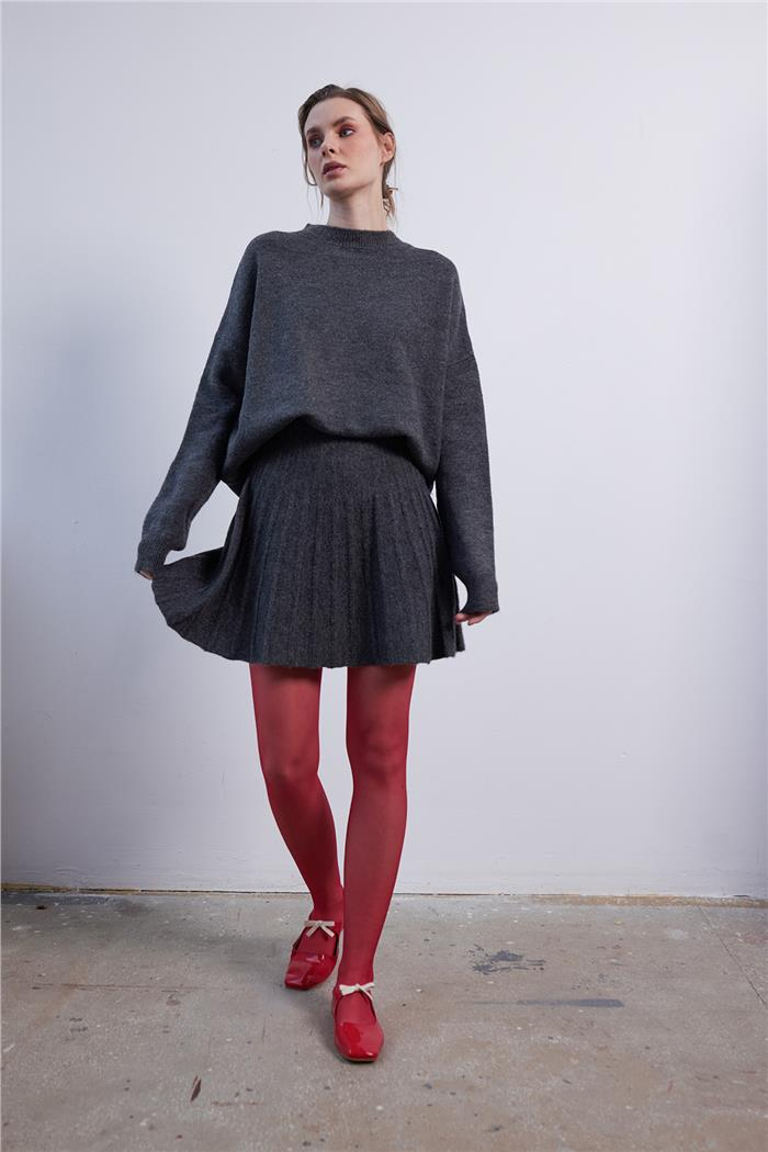 Nisan Kadın Pileli Triko Etek ANTRASİT TT4240-Z (TT4240-Z)