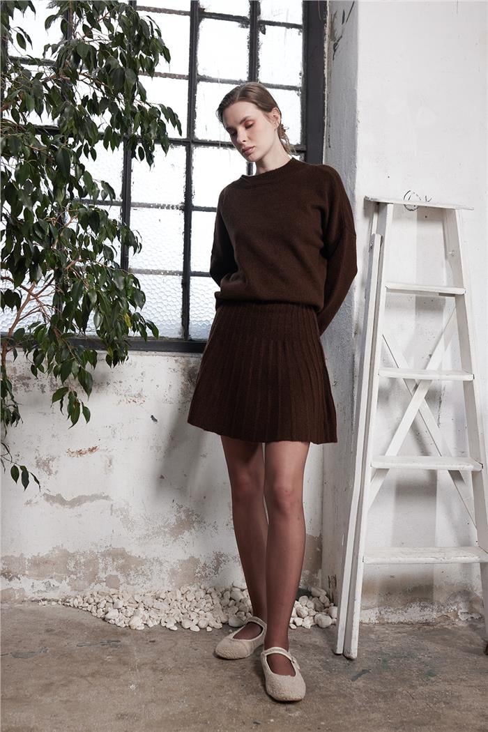 Nisan Kadın Pileli Triko Etek KAHVE TT4240-Z (TT4240-Z)