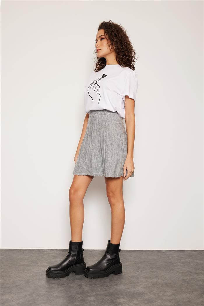 Nisan Kadın Pilili Triko Etek GRİ TT4197-Z (TT4197-Z)