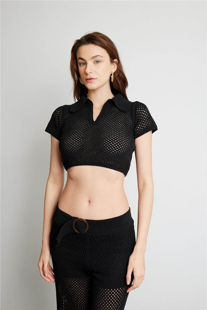 Nisan Kadın Polo Yaka Ajurlu Triko SİYAH TT4246-Z (TT4246-Z)