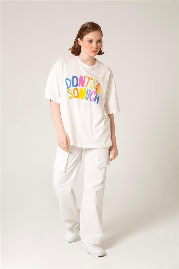 Nisan Kadın Renkli Yazı Baskılı T-Shirt EKRU MN23-1001 (MN23-1001)