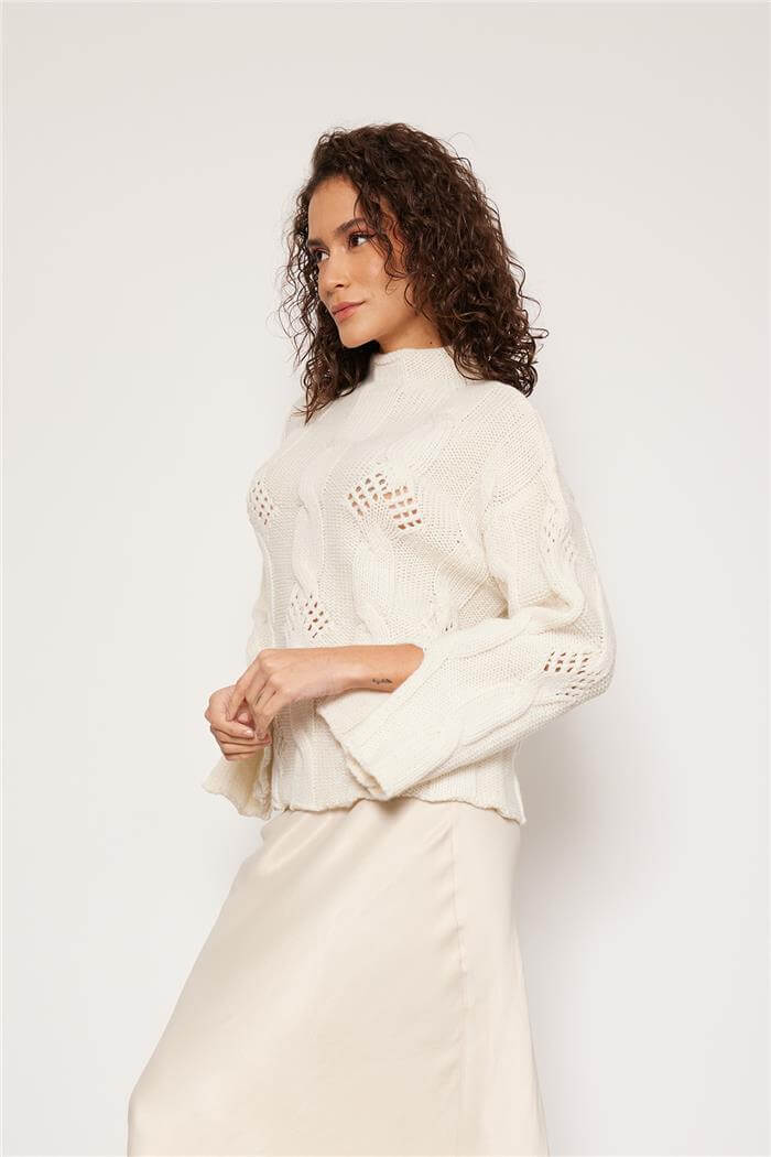 Nisan Kadın SAÇ ÖRGÜLÜ KOLU YIRTMAÇLI TRİKO KAZAK EKRU TT4204-Z (TT4204-Z)