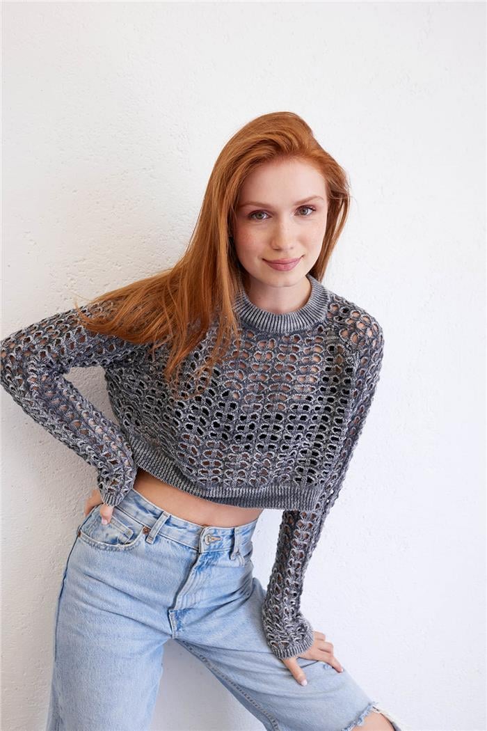 Nisan Kadın SOLUK EFEKTLİ TRİKO KAZAK ANTRASİT TT3965-Z