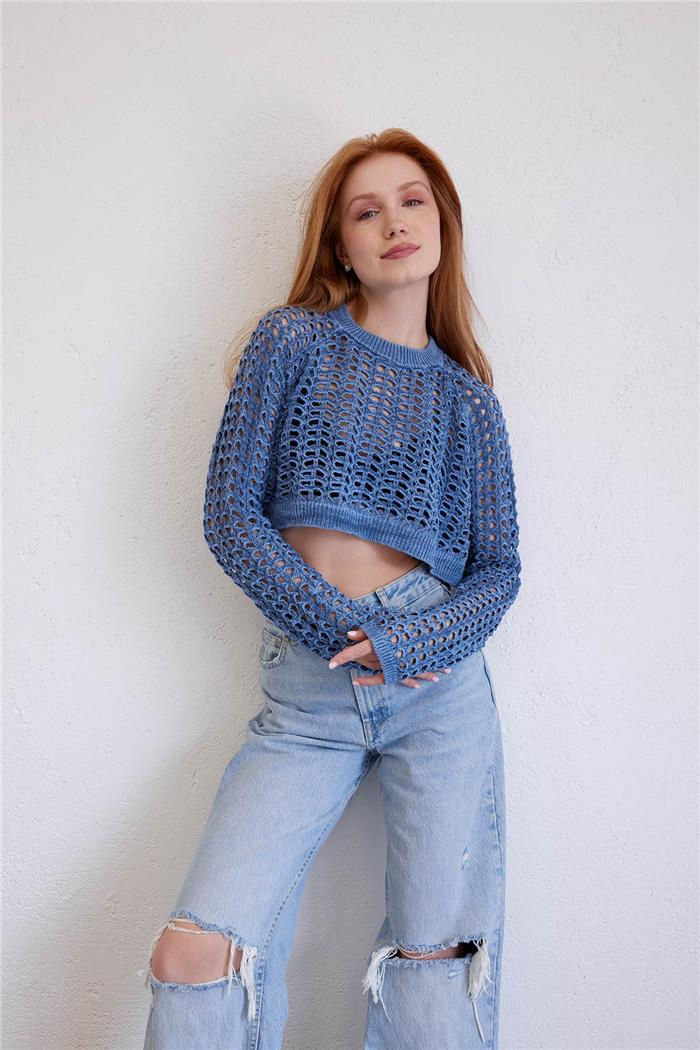 Nisan Kadın SOLUK EFEKTLİ TRİKO KAZAK İNDİGO TT3965-Z