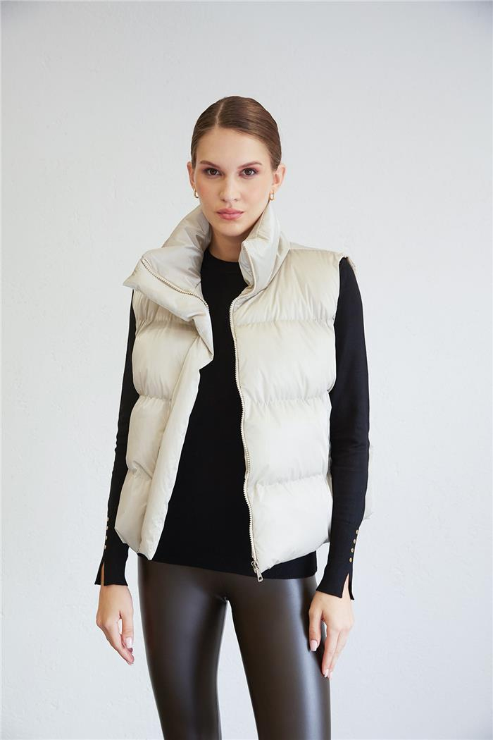 Nisan Kadın Yan Cep Detaylı Parlak Yelek GOLD PD24-1050 (PD24-1050)