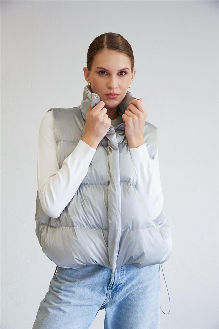 Nisan Kadın Yan Cep Detaylı Parlak Yelek GÜMÜŞ PD24-1050 (PD24-1050)