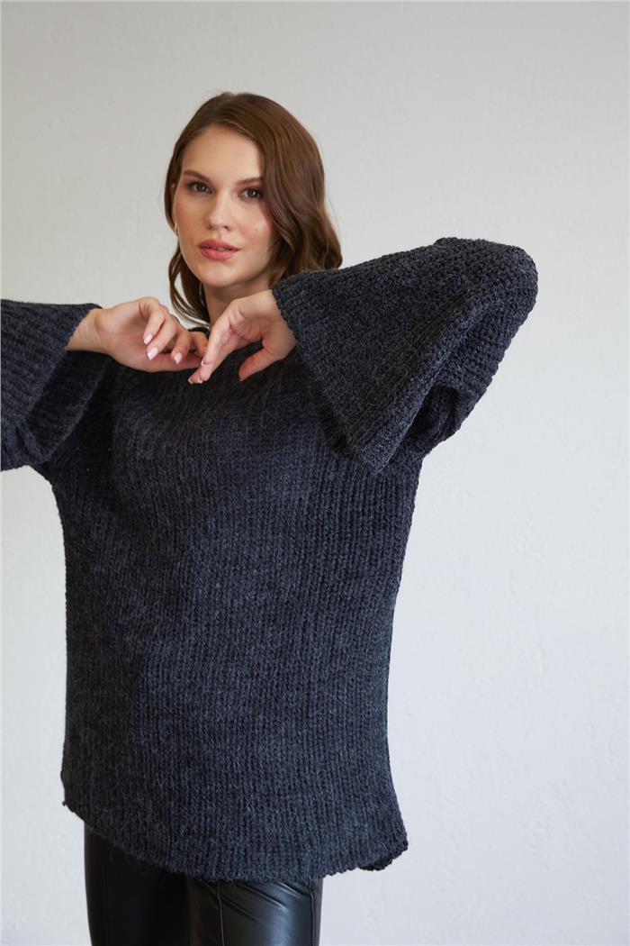 Nisan Kadın Yırtmaçlı Oversize Kazak ANTRASİT TT4052-Z