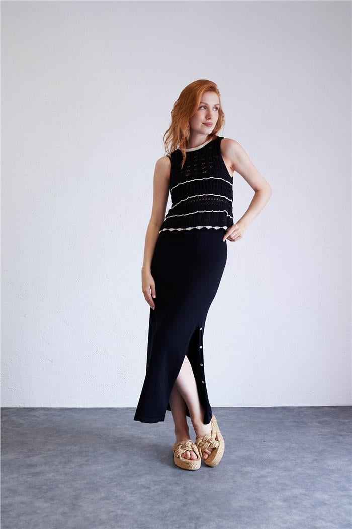 Nisan Kadın Yırtmaçlı Triko Etek SİYAH TT3943-Z (TT3943-Z)