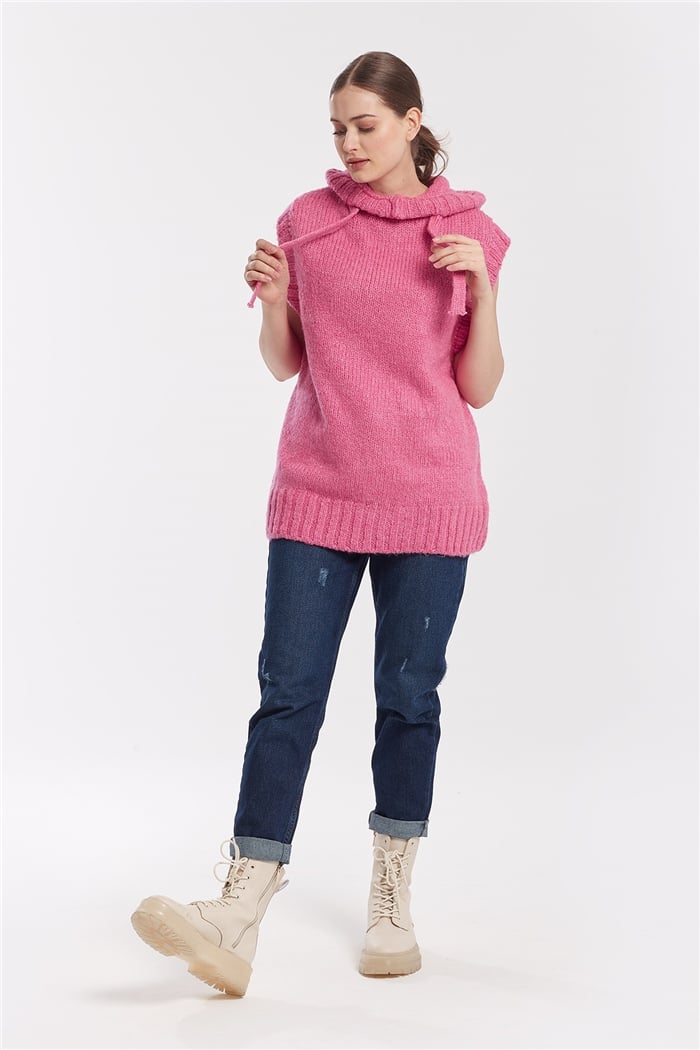 Nisan Kadın Kapşonlu Triko Süveter PEMBE TT3355-Z (TT3355-Z)