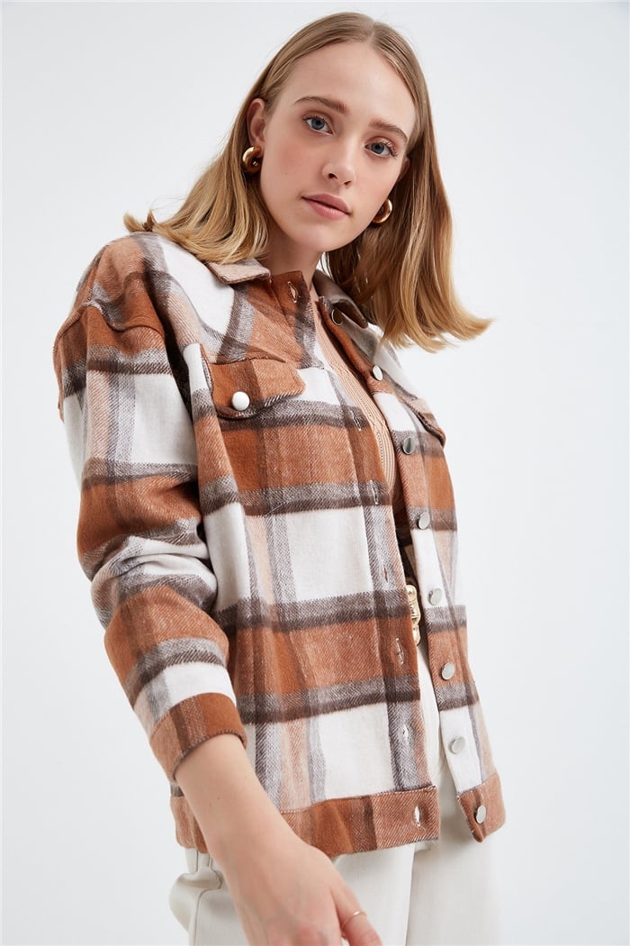 Nisan Kadın Kareli Gömlek KAHVE PT20-240 (PT20-240)