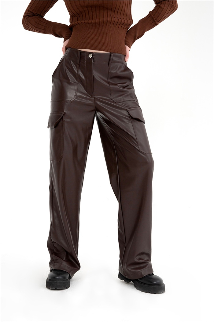Nisan Kadın Kargo Cepli Deri Pantolon KAHVE N22-1563 (N22-1563)