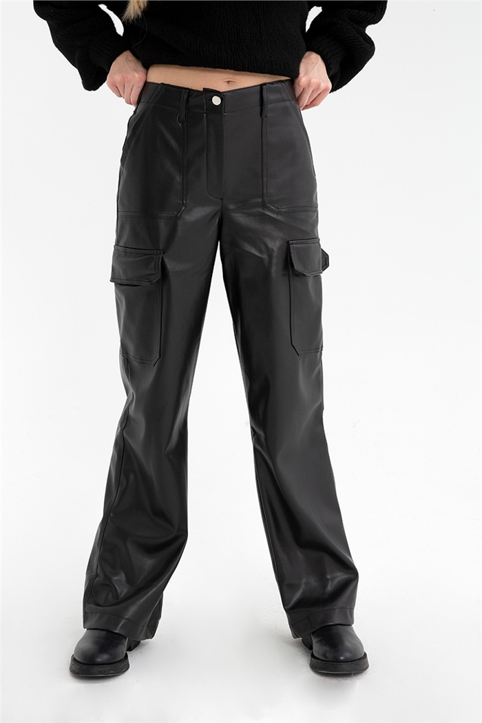 Nisan Kadın Kargo Cepli Deri Pantolon SİYAH N22-1563