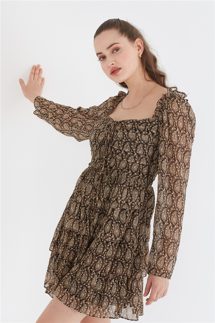 Nisan KATLI BÜZGÜLÜ ELBİSE  BEJ  N21-1287