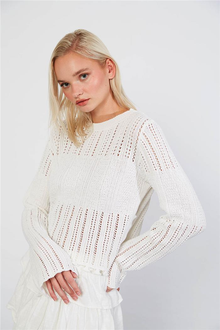 Nisan Kadın Ponpon Detaylı Delikli Triko Kazak HAM EKRU TT3766-Z (TT3766-Z)
