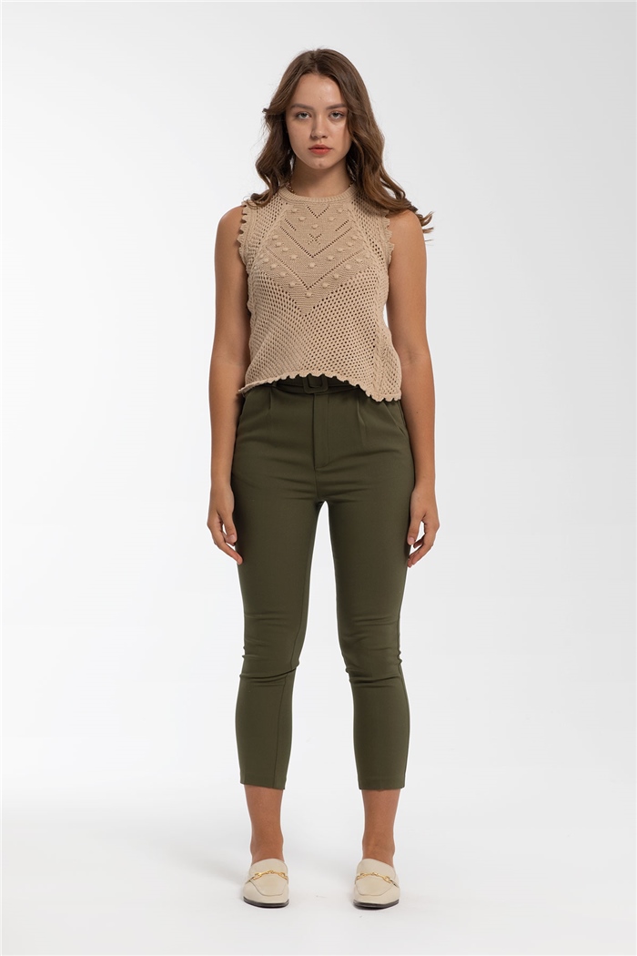 Nisan Ponponlu Ajur Desenli Triko Süveter  BEJ  TT3187-Z