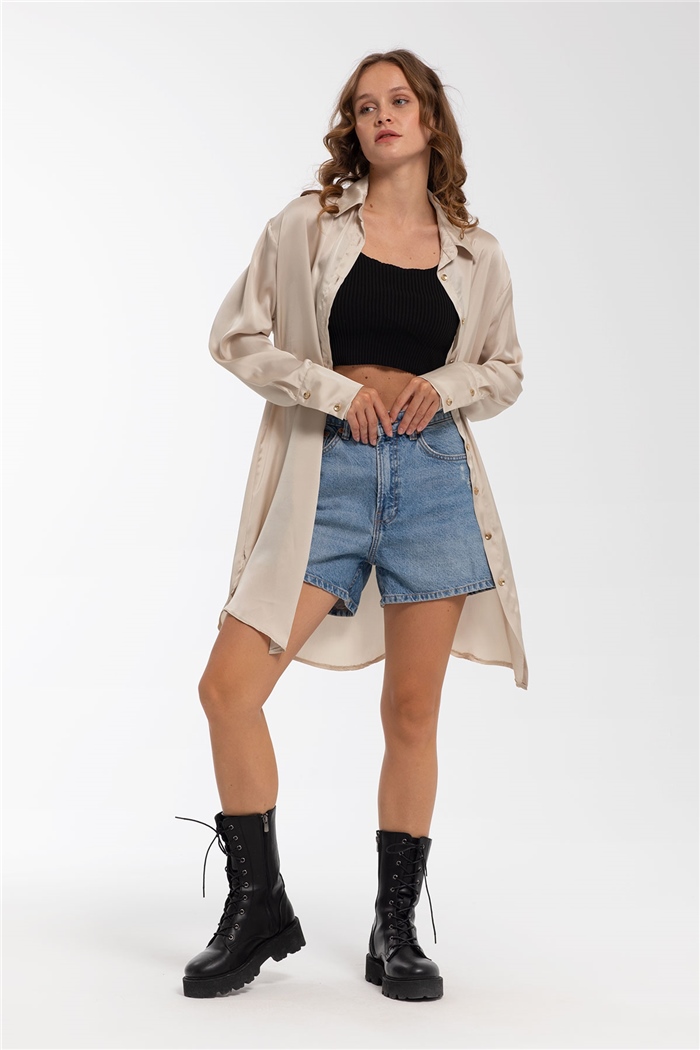 Nisan Şifon Saten Gömlek  BEJ  N21-1235