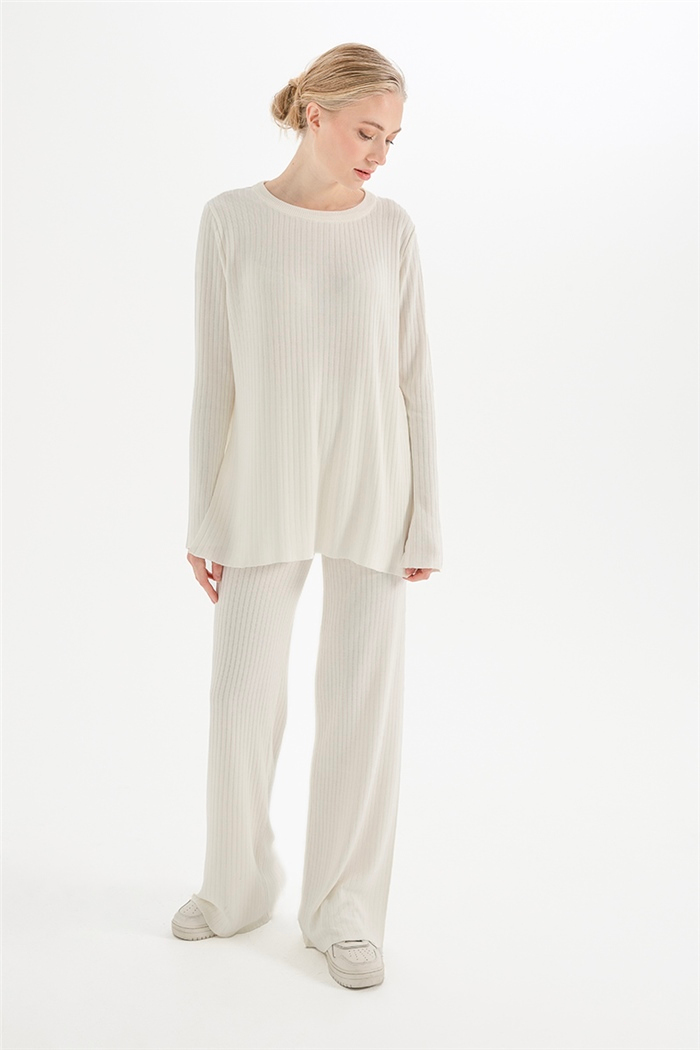 Nisan Kadın Triko Kazak ve Pantolon Takım BEYAZ TT3482-Z