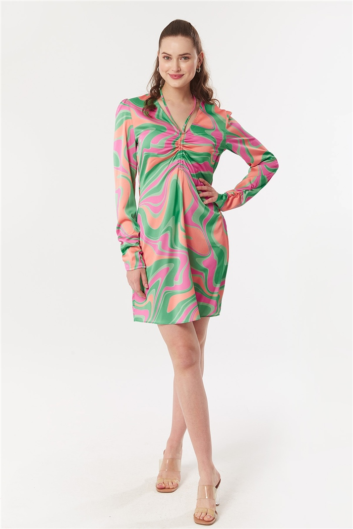V YAKA SATEN ELBİSE N22-1294