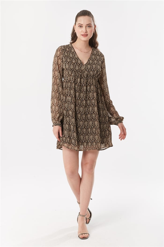 Nisan Kadın V YAKA ŞİFON ELBİSE BEJ N21-1284 (N21-1284)