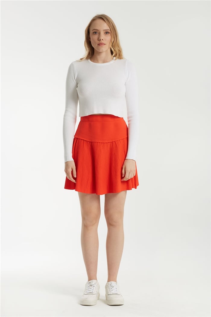 Nisan Kadın VOLANLI KISA TRİKO ETEK ORANJ TT3343-Z (TT3343-Z)